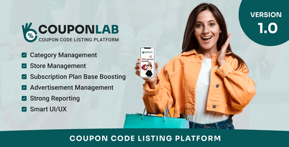 CouponLab, adalah Solusi Bisnis Daftar Kupon profesional yang hadir dengan PHP laravel. Ini dikembangkan untuk orang-orang yang ingin memulai situs web Bisnis Daftar Kupon Sendiri.