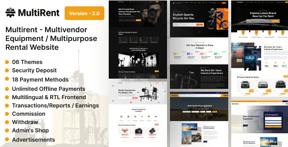 “MultiRent” adalah Situs Web Penyewaan Peralatan Multivendor.
