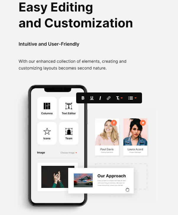 Dengan serangkaian shortcode dan widget yang powerfull, Anda dapat memamerkan keahlian, pengalaman dan pencapaian kerja, misi dan prioritas Anda, memberikan testimonial, dan memamerkan portofolio Anda di satu halaman.