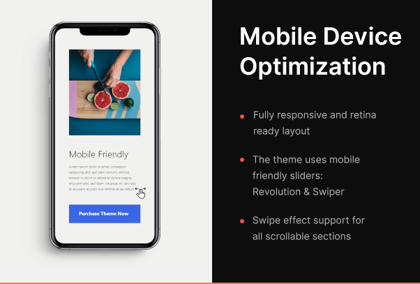 Tema ini sempurna untuk layanan copywriter, biro desainer, organisasi pengembang. Juga cocok untuk fotografer, fashion, profil pribadi dan blogger gaya hidup dan profesional lain yang ingin memamerkan karya agensi mereka, karier perusahaan, dan kartu nama perusahaan perusahaan.