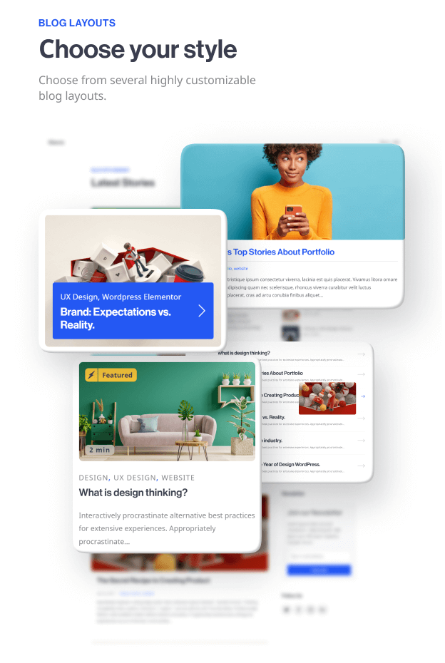 Personalisasi kisi asimetrisnya dengan skema warna khusus dan pamerkan konten multimedia Anda dengan format posting. Tema kami berfungsi dengan baik dalam banyak bahasa, untuk kemampuan apa pun, dan di perangkat apa pun. Kompatibilitas Pembuat Halaman Elementor Penuh.